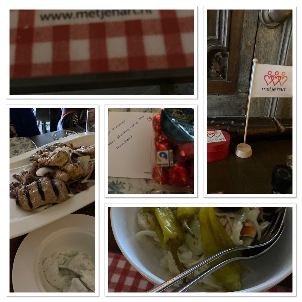 Met dank aan de vrijwilligers van stichting,,Met je hart “ ik werd door vrijwilliger Henny weg gebracht en ook weer gehaald ,geweldig toch ,en het diner was bij de Griek Sirenes .ons groepje was niet zo groot,wel gezellig ,en zeker erg lekker ,