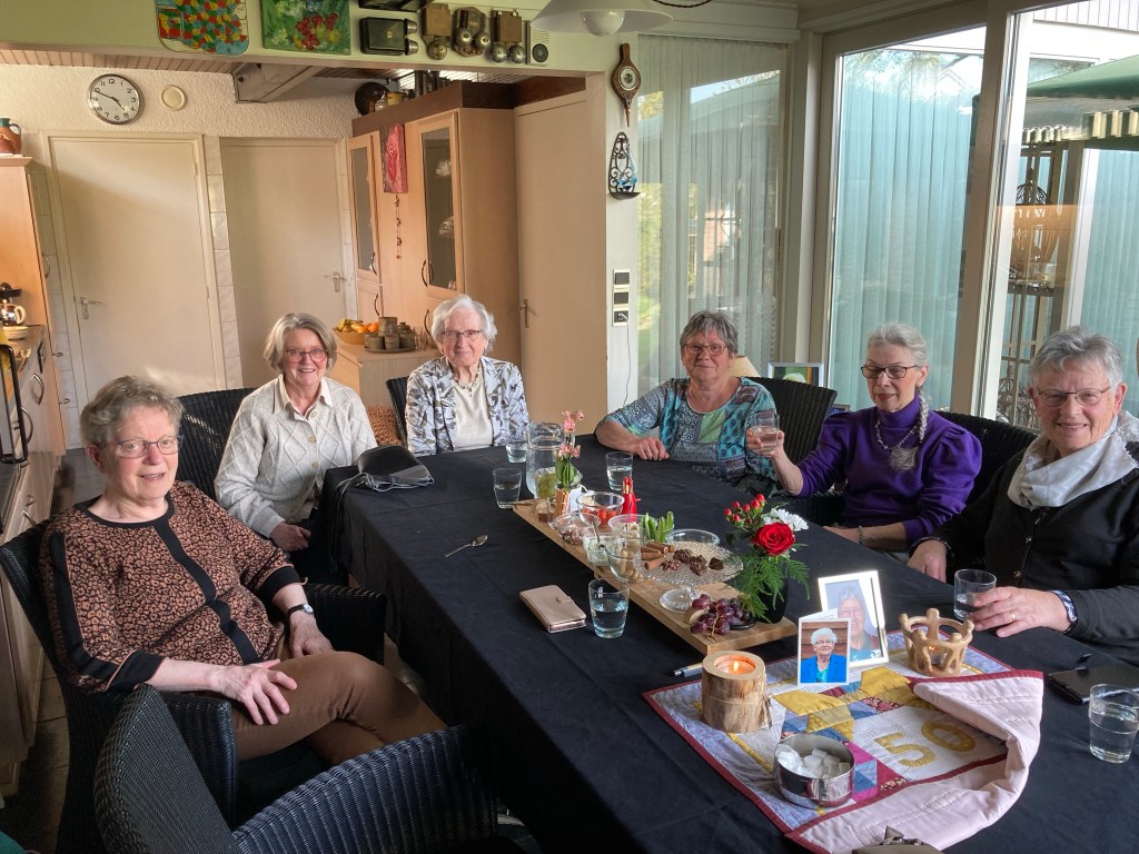 Wat ben ik blij en dankbaar dat wij dit samen hebben mogen vieren , jammer genoeg drie van onze club , zijn ons al ontvallen ,vanm Mieke hadden wij geen foto en van Sjan en Dina wel ,ze waren er in onze gedachten ook helemaal bij .eentje heeft de foto gemaakt , stuur er maar meteen twee .