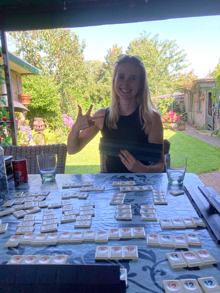 Mijn kleindochter met haar moeder, kwamen , daarna met mij een potje ,drie in totaal rummikub spelen , en ze ook 3 maal gewonnen heeft .