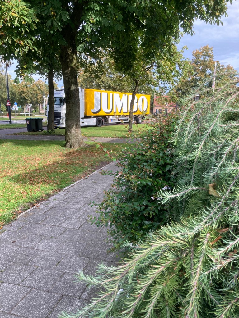 En hiermee de supermarkt bevoorraden.en ze stopte beiden .te gelijk ,bij mij voor de deur .