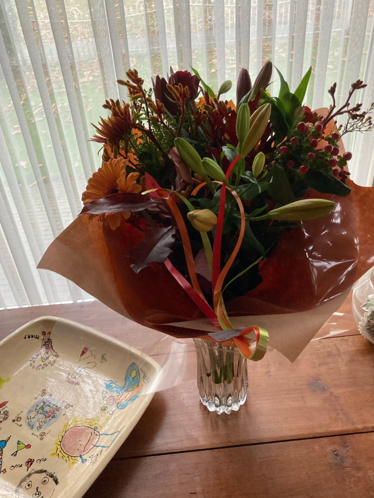Kreeg een onderbreking,ze kwamen bloemen brengen , ze zijn welkom , nu mijn bloemen vrouwtje even gestopt is .
