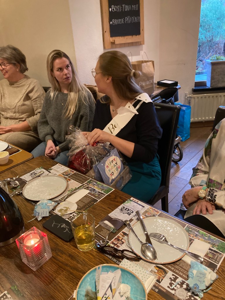 Cadeaus volop voor moeder en baby , ze had van mij een kettingtje met een levensboom gekregen, daar had ze zelf een klein hartje bij gekocht ..