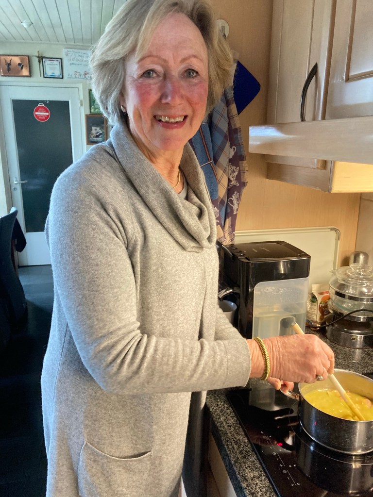 Mijn nichtje Nelly kwam mij die soep kant en klaar brengen.