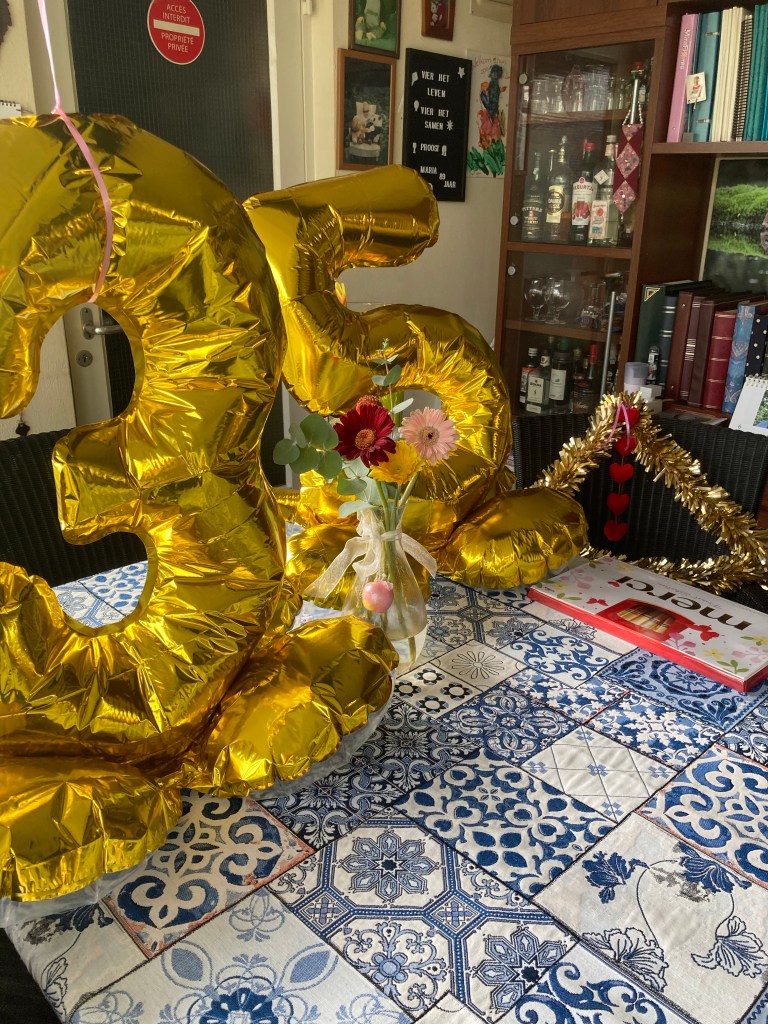 Deze morgen was er mijn lieve hulp , samen ons feestje stilletjes voort gezet .de maand Maart is nu onze feest maand , die zetten we in een lijstje