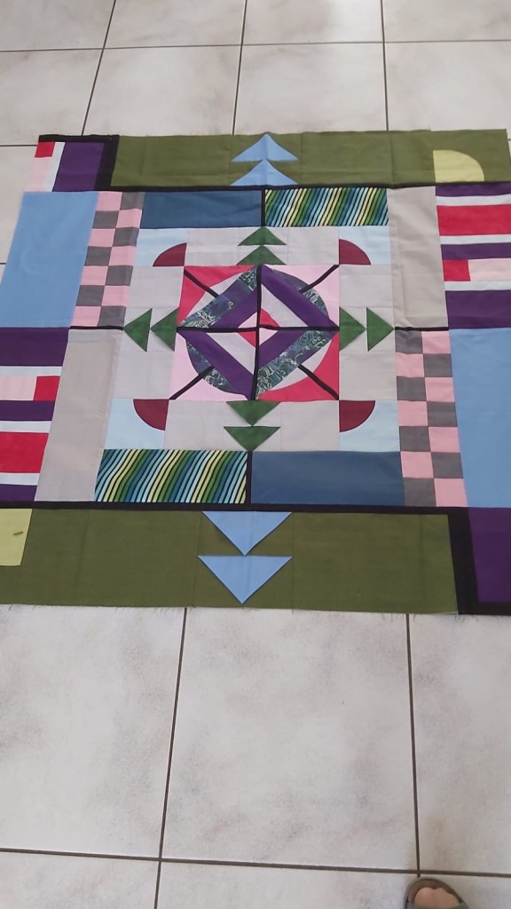 Zij neemt deel,aan een estafette quilt ,in mijn goede jaren ook mee gedaan .