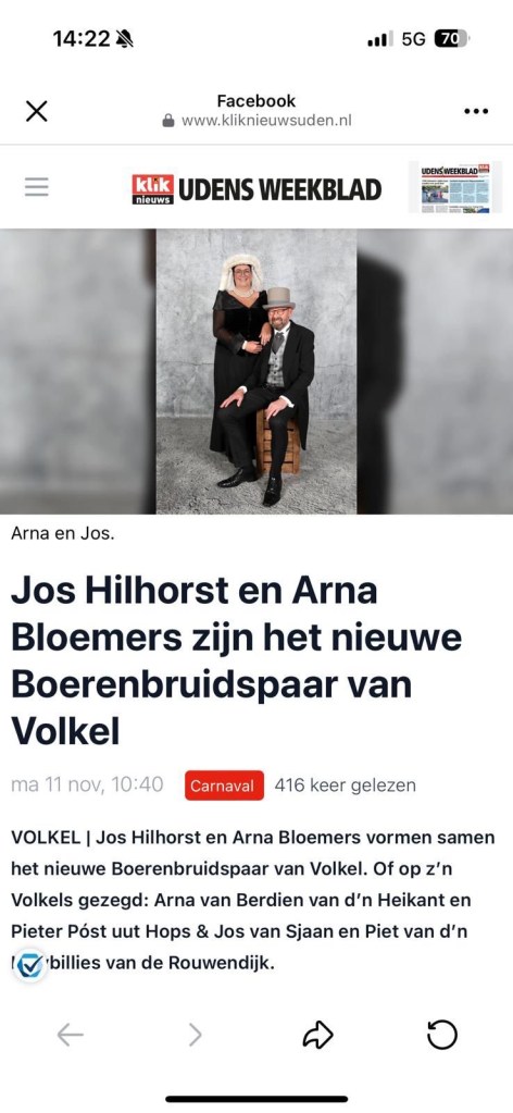 Hij is al enkele jaren , de Sint in ons dorp ,en de bruid ,is al jaren ,de organisatie bron ,van de Sinterklaas feesten , ze praat ook alles aan elkaar .