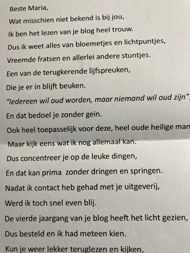 Het overrompelende mij gisteren en nu vandaag nog lieve groetjes van mij Maria