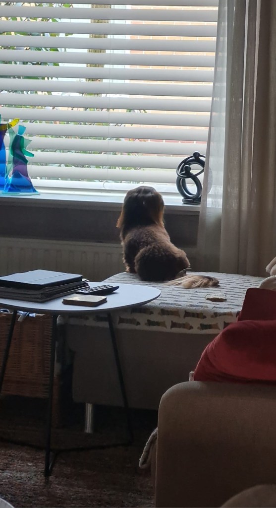En mijn fotomodel Fritske die hier op zijn vrouwtje aan het wachten is .