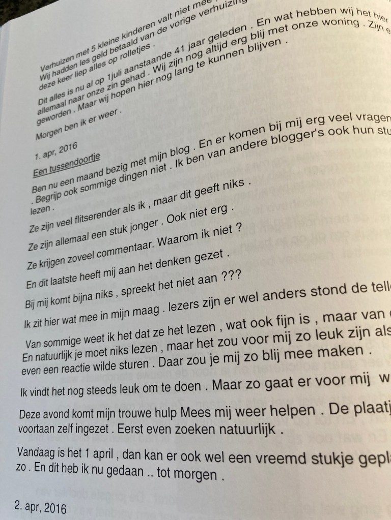 begonnen met een blog te schrijven . Met hulp van kleindochter Mees maar die site stopte helemaal, Mees ging in het buiten land studeren