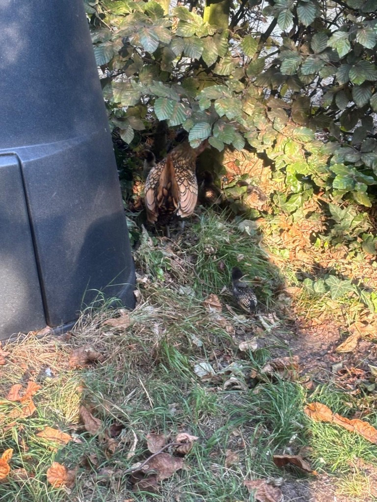 De kippen scharende ook weer rond ,met haar kuikens .