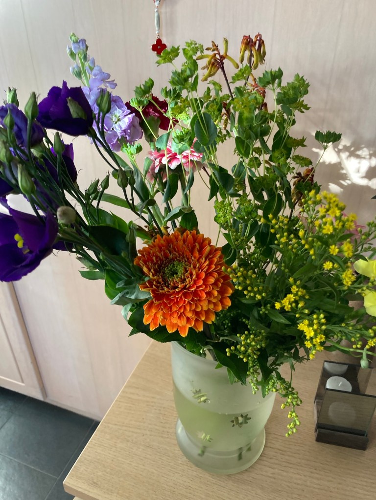 Gefeliciteerd met alle bloemetjes, verjaardag van kleinkind, en alweer bevorderd tot overgrootoma. Zo blijft het leven leuk Maria❤️