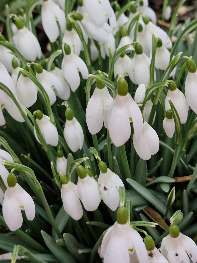 De sneeuwklokjes steken voorzichtig hun kopjes op .